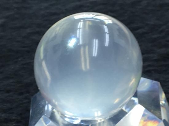 この内包物の影響で、光に当てると青白いシラーのようなラインやスポットが見られる特徴的でミルキーですが透明感もあり、微細な繊維状鉱物が作り出した幻想的な色合いが美しいスフィアとなっています。