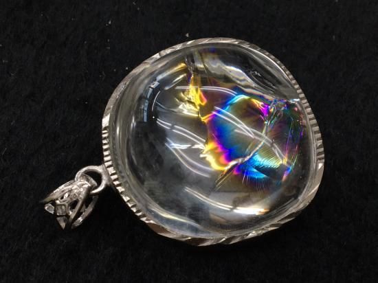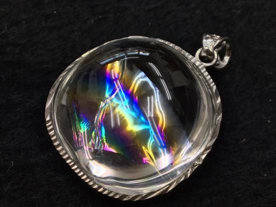 水晶の内部のごく薄い裂け目(クラック層)に生じた、光の干渉現象で現れた虹色効果(イリデッセンス)をもつものは、レインボー・クォーツと呼ばれて人気が あります。