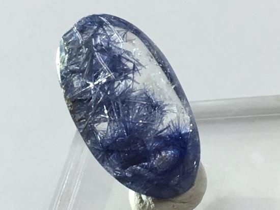 デュモルチェライトinクォーツは、デュモルチェライトが針状結晶で成長し水晶の中に内包された近年発見された産出量の少ない希少石です。