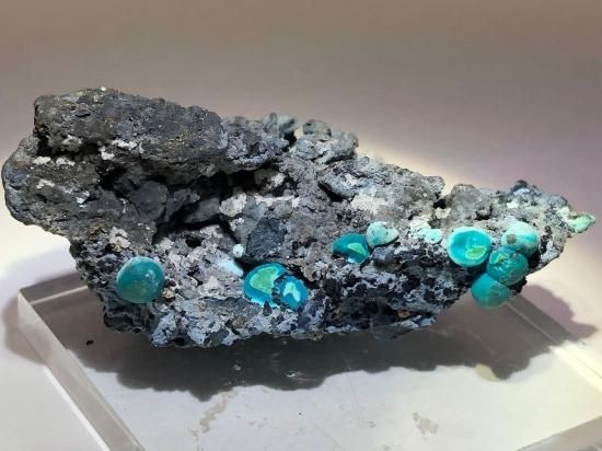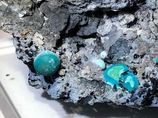 クリソコラは、銅鉱床の酸化帯で、アジュライトやマラカイト、ヘマタイト等とともに産出します。