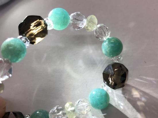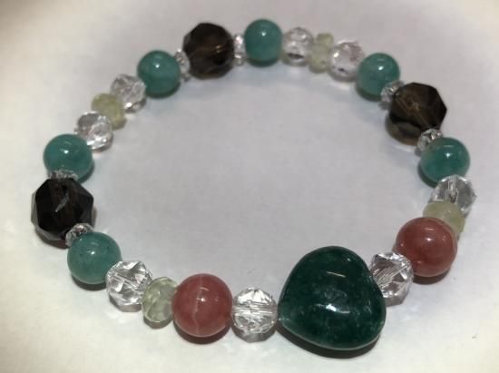 フックサイト(ハート型)・インカローズ・アマゾナイト・プレナイト・スモーキークォーツ☆ブレス